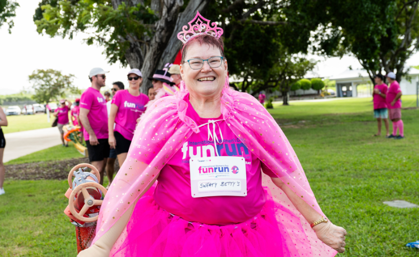 Maria has channelled her experience into advocacy, bravely sharing her story to inspire others. Through events like the IWDFR and BCAM, Maria has become a true champion for the cause. Known for her generosity, she’s brought joy to Mater Townsville staff with her signature chocolate brownies during her treatments. In 2024, Maria even shared her beloved brownie recipe for our Breasties Brunch promotional tea towels.