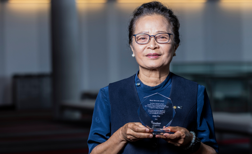 Ms Julia Wu OAM is a Mater Foundation Patron and was recently honoured with receiving the Betty McGrath award for 2022 which acknowledges the significant contribution of a Mater Foundation supporter.